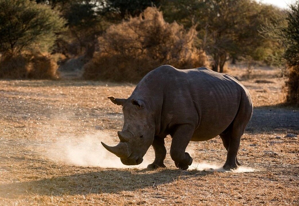 Белый носорог — самый крупный из двух африканских видов носорогов. Носороги известны своим отчетливым «доисторическим», солидным видом. У белых носорогов на кончике носа два рога. Передний рог обычно намного больше внутреннего. Самки используют свои рога, чтобы защитить своих детенышей, а самцы используют их для борьбы с нападающими. Среда обитания: саванны Африки Цвет кожи: серый. Нет разницы в цвете кожи белого и черного носорогов, несмотря на их названия. Отличается строение головы и питание. Продолжительность жизни: Они могут жить до 35 лет в дикой природе и 40 лет в неволе. Образ жизни белого носорога Питаются носороги преимущественно травой. Им нужна вода для питья каждые 2-4 дня. Белые носороги ведут оседлый, полу-социальный и территориальный образ жизни. Взрослые особи в основном ведут одиночный образ жизни, иногда собираются группами до десятка особей. Белые носороги питаются и отдыхают попеременно днем и ночью. В жаркую и сухую погоду они обычно отдыхают в самое жаркое врем