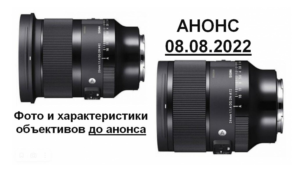 Как Photar.ru сообщал ранее, компания Sigma готовит анонс двух новых светосильных объектива серии Art. Новинки будут представлены 8 августа 2022 года и будут выпускаться для камер с байонетами Sony E-mount и Leica L-mount. Речь идёт о следующей оптике: Sigma 20mm и 24mm F/1.4 DG DN Art. Теперь же источник опубликовал и первые качественные фотографии этих двух новинок. А также ещё раз подтвердил оптическую схему данной оптики. Sigma 20mm F1.4 DG DN | Art Рекомендованная розничная цена по данным источника составит 152 900 иен (экв. в руб. 69000). Sigma 24mm F/1.4 DG DN | Art Также напомню, что Sigma зарегистрировала новый патент 1 августа 2022 года. Патент подробно описывает объективы Sigma 20mm F/2 и 24mm F/2 DG DN которые уже были представлены в сентябре 2021 года. Но нас больше интересуют два других, которые вскользь упоминаются, а именно оптика Sigma 13mm F/2 DC и Sigma 18mm F/2 DG. Кроме того, в документации указана оптическая схема этих двух объективов. [sonyalpharumors.com] Следи