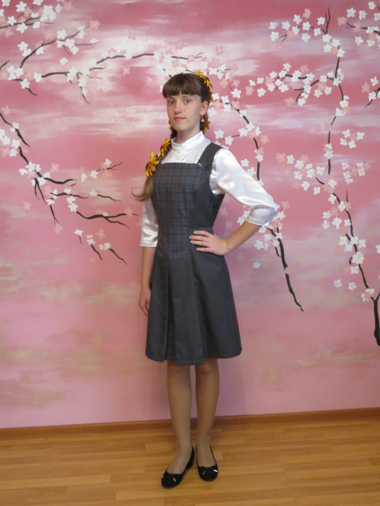 Предлагается сарафан для девочки-подростка из коллекции дизайнерской школьной формы, ставшей призёром Международного фестиваля моды "Губернский стиль" . Сарафан сшит в авторском ателье в единственном экземпляре из дорогой "дышащей" , гигроскопичной шерстяной ткани. Высокое качество обусловлено: < пошивом с соблюдением швейной технологии на специализированном оборудовании в ателье; <выверенными лекалами, построенными профессиональным конструктором-модельером; < камвольной костюмной тканью, качество которой известно со времен СССР и обусловлено составом (40 % шерсти, 60 % синтетических волокон). Вещи из коллекции продаются примерно по стоимости всех материалов. Причина распродажи проста : перепрофилирование ателье. Сарафан приталенного силуэта, к низу расклешенный. На передней нижней части складки. По талии регулируется 2 завязывающимися полупоясами. Спереди застёгивающиеся бретели: можно регулировать рост девочки, перешивая пуговицы. Спинка закрытая. Застёжка на молнии в боковом шве и