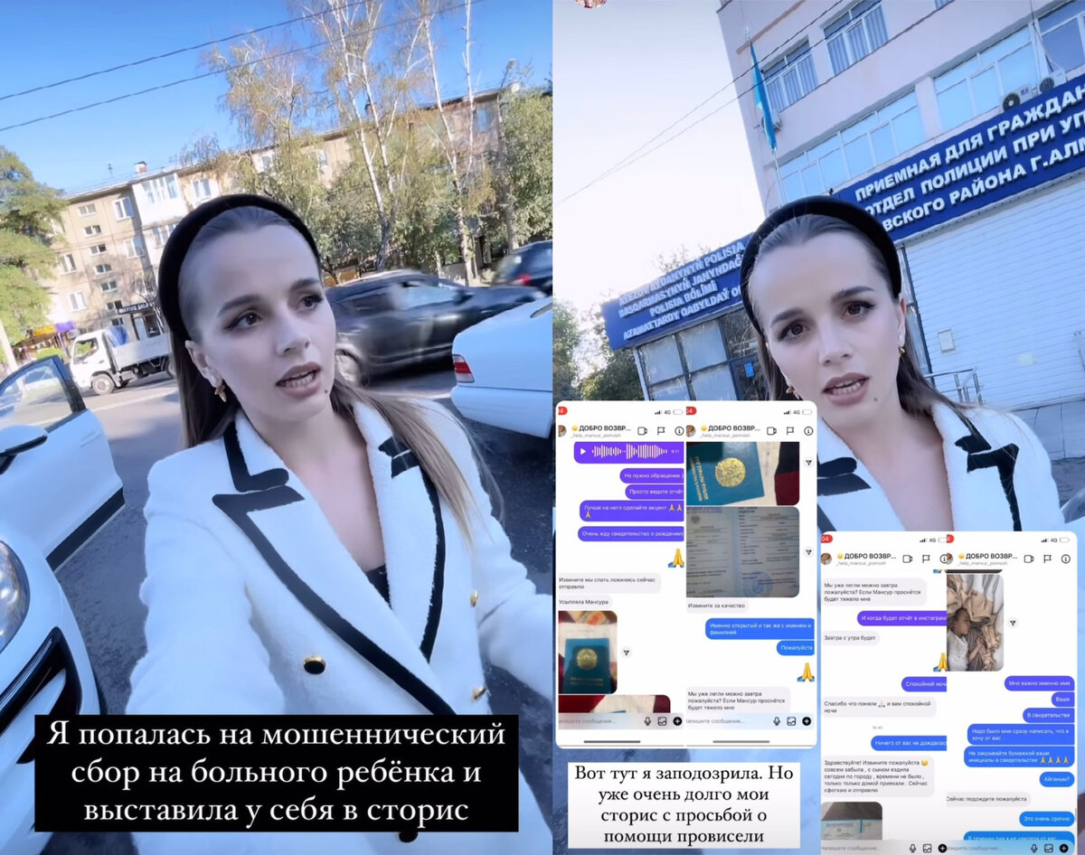 Блогер Дарья Александрова в своём аккаунте в Instagram заявила, что столкнулась с мошенницами, которые вели через соцсети сбор денег на лечение своих якобы больных детей. Две девушки на протяжении трёх лет обманывали казахстанцев, воруя информацию у родителей детей, которым действительно нужна помощь. О вопиющем случае, произошедшем в Алматы, читайте далее. Дарья Александрова в Instagram-stories рассказала, что мошенницы сами обратились к ней за помощью. Они попросили блогера рассказать о детях, на лечение которых якобы ведётся сбор. Дети действительно существуют, вот только деньги не приходили им на счёт. Мошенницы украли информацию с настоящих аккаунтов больных детей и выдавали её с ложных аккаунтов, забирая все деньги себе. «Я им поверила и поделилась с вами этой историей, так как они предоставили все документы, где в графе «мать» была прописана одна из мошенниц. И видео, где по моей просьбе видно и ребёнка, и произносится моё имя. Всё было подделкой! На видео они наложили свой го