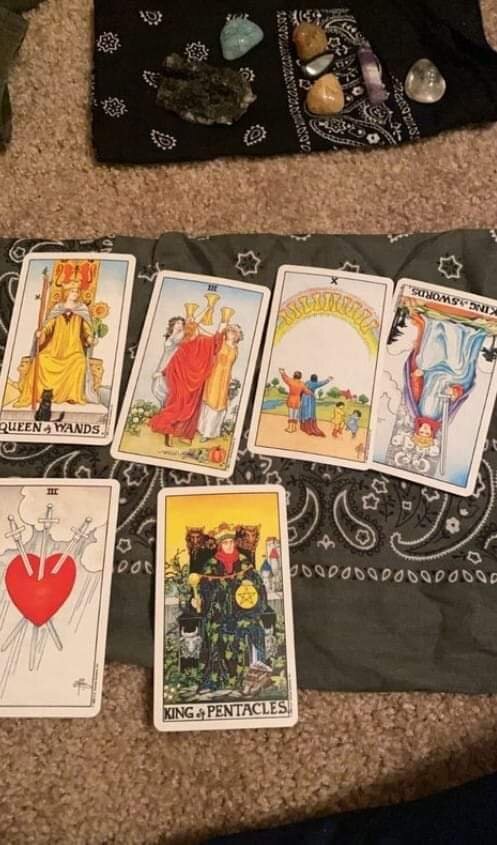 ➡️ Среди прочих Арканов, указывающих на романтическую или тайную связь - Влюбленные пп, Звезда, Дьявол, Сила, Маг, Папа пп, и придворные карты колоды- королевы - мечей, чаш, жезлов, Короли -чаш, жезлов, Рыцари- чаш, жезлов, Паж-чаш, жезлов, а так же цифровые арканы, как сопутствующие или подтверждающие, а иногда, как и самостоятельные указатели - 3 чаш, 3 жезлов, 3 мечей, 5 пент , 7 меч ,7 пент. А такие арканы как Император, Императрица, Жрец, 4 жезлов, 10 чаш, 10 пент - укажут на семейный статус и косвенно на "треугольник", Жрец пп- может указывать на гражданский брак или на то, что люди не живут вместе, но официально женаты, 9 чаш- часто указывает на "застольных дам", или обычное ни к чему не обязывающее времяпровождение, Туз жезлов, Туз чаш- укажет на наличие объекта увлечения.