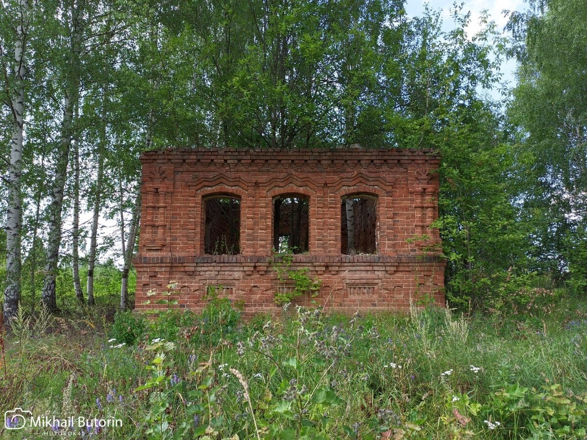 Здравствуйте, дорогие читатели! Рад Вас приветствовать на страничках «Вятского Хутора» − блога о деревне! Предлагаю совершить небольшую поездку в соседний починок. Там до наших дней дошли два каменных строения − почти точные копии, близнецы нашему дому, что мы восстанавливаем из руин. Одному из них я хочу посвятить эту публикацию. Первый дом в том починке ещё имеет крышу и даже почти все окна. Второй − это лишь стены. Нет ни пола, ни потолка, ни кровли. Даже не сохранилось ни одной надворной постройки. Просто кирпичная «коробка» в окружении молодых деревьев. Три окна по фасаду. На запад «смотрят два окна, а на восток − одно. Вход расположен в северной стене. Стены украшены декором, который одновременно является и оберегом. Наличники с зигзагообразным орнаментом, по углам солнца и колонны. У каждого элемента есть своё значение. Если издалека можно сказать, что наш дом и этот − полные близнецы, то вблизи заметна небольшая разница. Так, например, у этих стен декоративных элементов боль