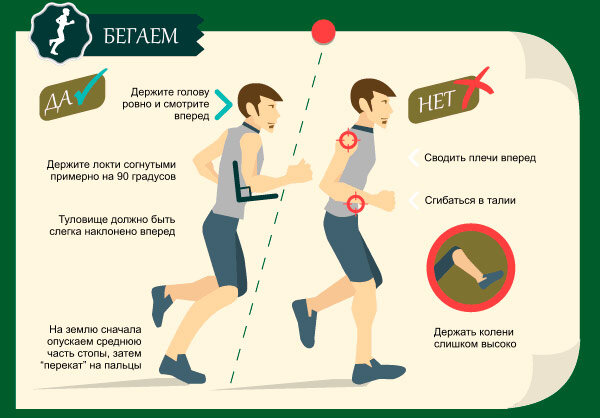 Соблюдайте рекомендации Первое с чего действительно стоит начать, так это поработать над техникой бега. Освоение технических аспектов поможет бежать дольше и энергичнее, а со стороны будет выглядеть так, словно едва касаетесь земли. Держите туловище прямо и лишь слегка наклонитесь вперед на 5-7 градусов. Это позволит переносить центр тяжести без дополнительных усилий и бежать по инерции. Руки согнуты в локтях под углом 90 градусов. Покажите класс и опустите большое палец вдоль кулака – это правильное положение кистей рук при беге. Во время движения плечевой пояс должен быть расслаблен, а руки работать в автоматическом режиме вдоль ребер “вперед-внутрь и назад-кнаружи”. Обращайте внимание на высоту колен во время бега. Здесь существует правило “чем ниже поднимается колено, тем меньше тратится сил”, а, чтобы при этом бежать быстрее делайте короткие, но частые шаги. Сконцентрируйтесь на беге Выбросьте лишние мысли из головы, пусть они не мешают бежать. Сконцентрируйтесь на движениях и не