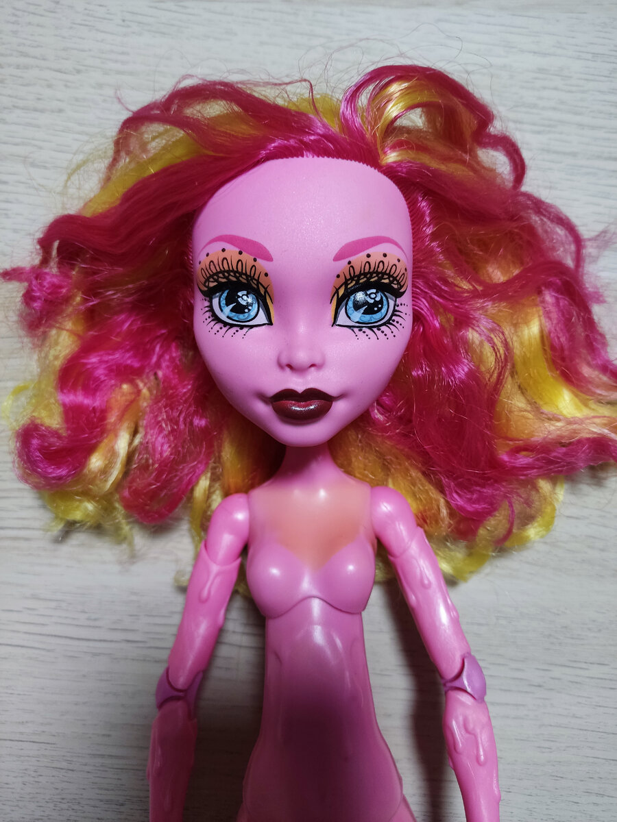 Всем привет! Меня зовут Александра, и я увлекаюсь преображением (ООАКом) кукол Monster High и Ever After High. В предыдущих статьях я рассказала о том, что учусь работать одновременно над несколькими проектами. Начинаю рассказывать о третьем проекте. Гулиопа Монстер Хай. Это большая кукла ростом около 42 см. У неё не будет какого-то конкретного образа. Заказчица Светлана будет сама одевать её. Кукла приехала ко мне авито-доставкой. Светлана сама нашла куклу, оформила покупку и отправила её на мой адрес. Желтизна на теле меня не испугала, тк куклу я буду перекрашивать в человеческий цвет. Когда-то я уже работала с этой куклой. И это оказалось не самое простое дело. Тогда я даже пообещала себе, что больше не возьмусь за переделку подобных кукол. Но мы часто не выполняем обещаний, которые даём сами себе в стрессовой ситуации. 😁 В прошлый раз, когда я удаляла волосы у Гулиопы, я разорвала голову по пробору. Резина этих голов какая-то пластмассовая, плохо переносит деформации, ко