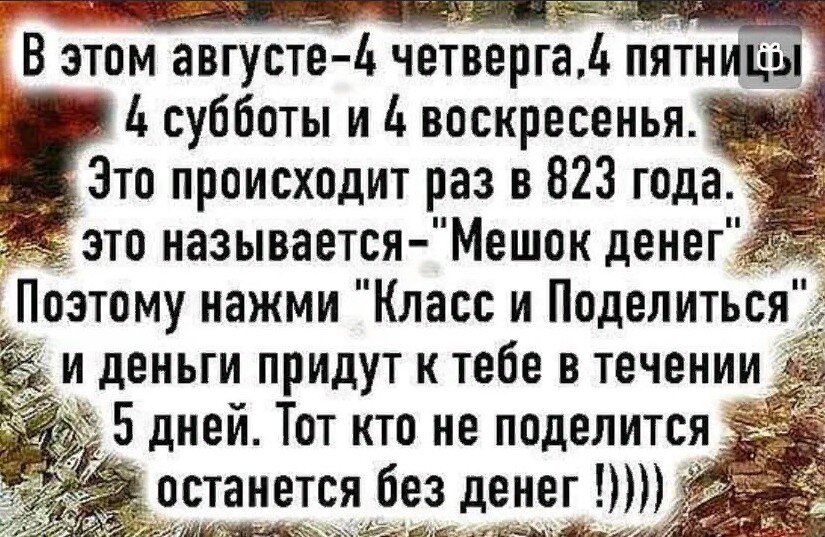 Всем мира, добра и финансового благополучия! Поделись с друзьями и близкими, об этом должен знать каждый! #я знаю #волшебный август