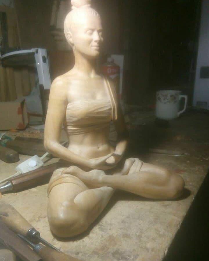 Мастер очень серьёзно и с большим уважением относится к каждой своей работе. А начинается всё — с общения с деревом. Не бывает такого, чтобы взять, да и начать сразу резать. «Подержишь заготовку в руках, походишь с ней, присядешь… Напитаешься, поймёшь, сольёшься с ней, а уж потом к работе приступишь.» Андрей рассказывает, что нередко приходится слышать упрёки в «загубливании» леса, в не бережном отношении. Но ведь ещё наши предки, отправляясь лес рубить всегда соблюдали неписанные законы, уважали лес, никогда не рубили ни одного дерева без надобности, просили у леса прощения. «Да, на самом деле, ни один мастер не станет с деревом работать без … согласия на это самого дерева!» Вот и получается, что для каждой задумки — своё дерево, как бы согласившееся стать тем, что задумал мастер. А иногда и само дерево подсказывает, каким ему стать. Бывают работы серьёзные, отнимающие много душевных сил и энергии, заставляющие много думать и переосознавать порой, взгляды на жизнь. Бывают работы лёгк