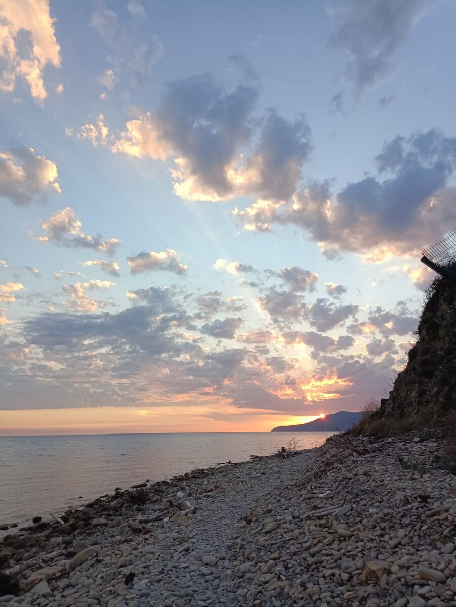 Народу на черноморских пляжах очень много в этом году ,и поехали мы в Криницу. Тут на пляже есть где разместиться не толкаясь как в Анапе.В обед вода была чистая теплая ,а к вечеру пошли волны ,вода у берега стала прохладнее и муть со дна поднялась,дно ведь песчаное, только берег галечный. Ветер не долго бушевал и к ночи уже море успакоилось. Небо на закате окрасилось всеми красками ,лучи закатного солнца красиво пробивались через облака. Вобщем смотрите сами на фото какая красота...