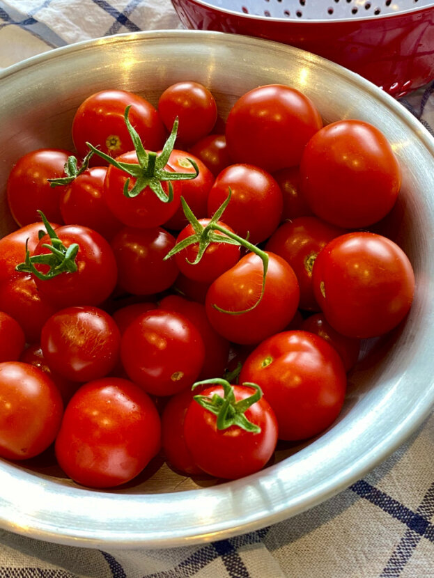 -4,5 Л ВОДЫ. -3 СТ.ЛОЖСКИ С ВЕРХОМ СОЛИ. -1,5 СТАКАНА САХАРА. -ЛЮБАЯ ЗЕЛЕНЬ (КРОМЕ ХРЕНА) -9%-НЫЙ УКСУС. Помидоры укладываем в банки, заливаем кипятком на 15 минут, воду сливаем и сразу же заливаем рассол. Рассол: воду с солью, сахаром и зеленью прокипятить, процедить, залить помидоры, добавить в каждую банку 1 ст. ложку уксуса и закатать. Такой же заправкой можно залить огурцы. Выходит, очень вкусно.