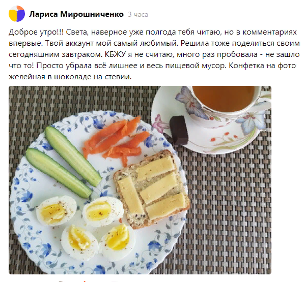 И не обязательно только завтраки - можно и обеды, и ужины, и перекусы... Напишите - закрепим эту традицию или оставим в разовых мероприятиях?) Я поступлю так, как вы скажете. И не могу не опубликовать вот этот комментарий: Лариса! Наконец-то ты вышла из партизанского подполья)