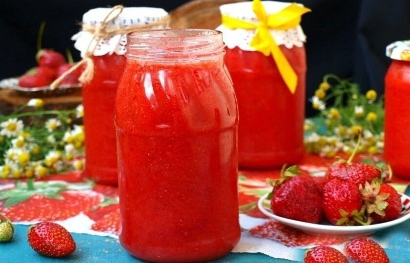 Как перетереть клубнику с сахаром на зиму? Для этого необходимо отмерить только 2 ингредиента. Ягоды берите свежесобранные, спелые. Я часть заготовки сохраняю в холодильнике, поэтому пропорции ягоды и сахара взяла 1:1,25, чтобы клубника хранилась дольше. Если ягода будет храниться в более прохладном погребе, можете взять количество ягоды и сахара в пропорции 1:1. Клубнику переберите, удалите чашелистики. Если попадаются подпорченные ягодки, полностью их убирайте. Они могут быть причиной ухудшения качества заготовки во время зимнего хранения. Ягоду тщательно промойте под холодной водой. Выложите клубнику на чистую ткань, чтобы стекла лишняя влага и ягода обсохла. Возьмите вместительную, подходящую по объему кастрюлю или емкость. Алюминиевую посуду не используйте во избежании вредного взаимодействия металла и кислоты, содержащейся в ягоде. Выложите клубнику в кастрюлю, добавьте примерно половину сахара. Пробейте ягоду с сахаром погружным блендером до полной однородности. В полученно