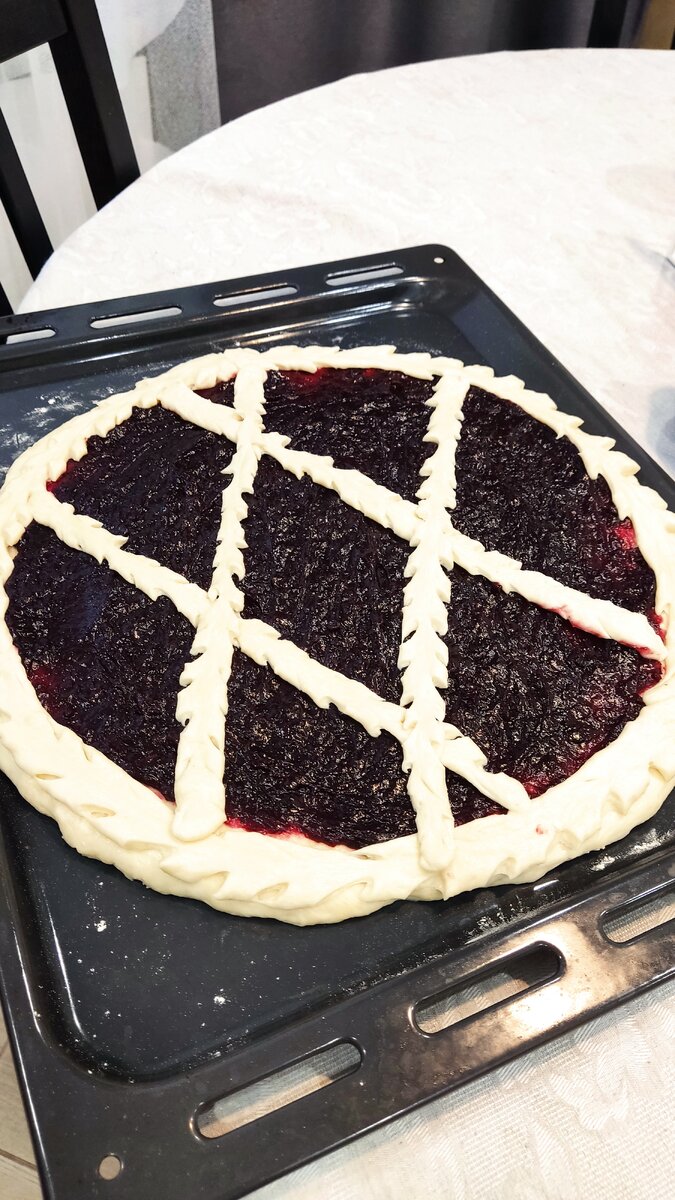 Распределяем по тесту джем. При желании украсим цветами или листиками из теста. Оставляем на 15 минут.