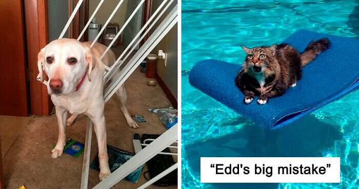 Тот, у кого никогда не было домашних животных, назовет нас всех сумасшедшими, но поверьте мне, животные очень часто недооценивают свои пропорции, и это приводит к серьезным ловушкам. Ранее здесь, в Bored Panda , мы освещали это явление в коллекции фотографий застрявших животных , у которых глаза были больше, чем их живот, а их живот был больше, чем их миска. На этот раз мы рассмотрим домашних животных, которые застревают в самых необычных местах, таких как кухонные столешницы, щели диванов, оконные проемы, мусорные баки... что угодно! Милые и очаровательно забавные фотографии показывают, что для вашего пушистого друга нет ничего невозможного, даже самые абсурдные идеи. Это как прожевать дырку в полотенце и засунуть туда голову. В то время как некоторые собачки думали, что это самое увлекательное занятие, их владелец, вероятно, не очень хотел увидеть результат. Так что прокрутите вниз и проголосуйте за свои любимые фотографии! 2. Шиба-ину застрял в кустах, делая вид, что все в поря
