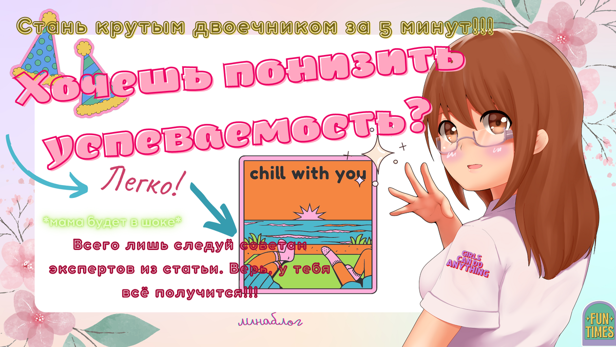 Всем добра, товарищи люди! С вами Лина, человек, который работает над понижением собственной школьной успеваемости уже более 3х лет. Я - эксперт, признанный многими людьми (мама, папа, бабушка и так далее), уж мне-то точно можно верить.