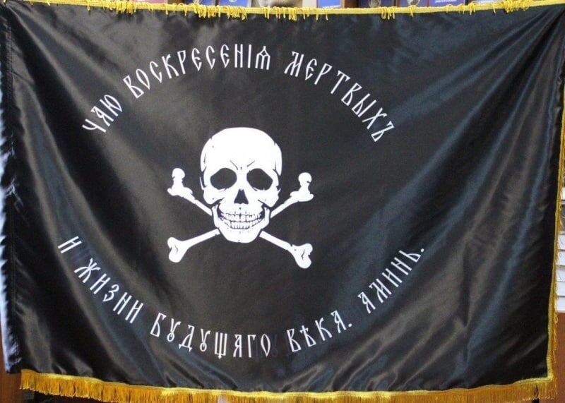 Черный флаг генерала Бакланова во второй половине XIX века заставлял трепетать от страха сердца горцев. По шелковому полю баклановского флага серебром был вышит значок – Адамова голова. По этому символу узнавали не только казаков Бакланова, но и черных Александрийских гусар (30 июля 1904 года их шефом стала Государыня Императрица Александра Федоровна, в телеграммах всегда называвшая свой полк "Бессмертным"). О "Баклановском значке" расскажем подробнее. "Бессмертными" (греч. "афанатос") назывались еще лучшие воины-телохранители при древнеперсидском царе Ксерксе I, правившем в 486-465 годах до н. э. В Отечественную войну 1812 года "Смертоносным" или "Бессмертным" – по серебряной Адамовой голове на головных уборах – именовался полк Петербургского ополчения, первым в Русской армии использовавший этот символ. Адамова голова, как отмечалось, была символом и Александрийских черных гусар. В 1913 году в честь столетия сражения при Кацбаке им были Высочайше пожалованы парадные шапки с