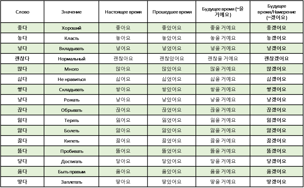 В корейском языке основы, оканчивающиеся на ㅎ, делятся на две категории с