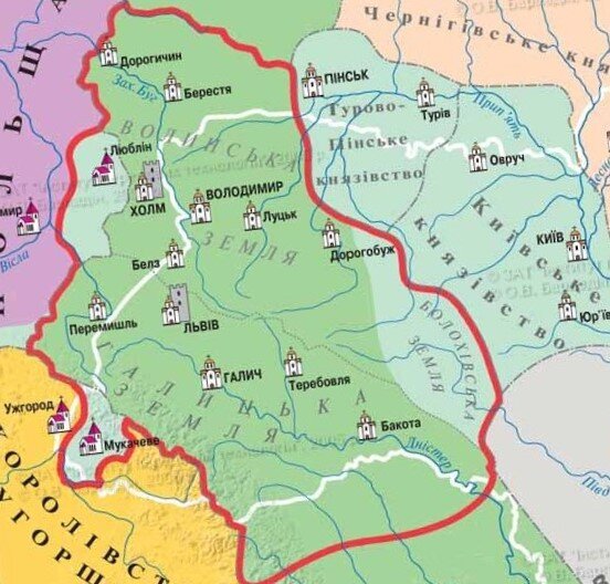 Данила Галичский (Шварно, Лев, Мстислав) и его брат Василько. Великими князьями в конце XIII ст. были Шварно Данилович (1264-1269 гг.) и Лев Данилович (1269-1301 гг.), начался постепенный упадок Галицко-Волынского государства. Хотя в этот период к королевству была присоединена часть Закарпатья и Люблянская земля, тем не менее, от него отошли ятвязкая и туровопинская земли, усилилось влияние Золотой Орды. Лев Данилович вел постоянные войны с Литвой, Польшей, и Золотой Ордой, которые сильно повлияли на экономическое развитие государства.
