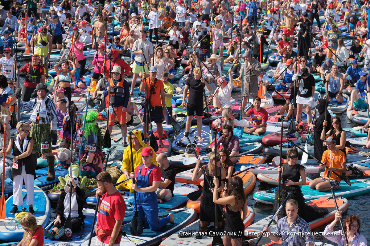 Один из самых ярких фестивалей сегодня прошел в Петербурге. Я каждый год видел снимки с этого мероприятия, но в этот раз оказался впервые. Сказать, что был впечатлен масштабом - ничего не сказать! В этом году собралось более 6000 участников! Похоже в следующие разы нужно уже будет всем выходить не в Фонтанку, а сразу в Неву )) Порадовали многие костюмы, люди не поленились проявить себя! Правда во многих костюмах явно было очень жарко, но зрелещно! Мои фавориты - деревня дураков! Прекрасно же! И сразу в голове начинает играть музыка из этой передачи )) На старте собралось уж очень много людей, тот момент, когда по воде можно было ходить буквально, просто переступая с сапа на сап. Зрителей тоже собралось немало, мне было сложно пробраться вперед, чтобы сделать снимок, а на месте старта кружило столько дронов, что свой запускать не решился. Все-таки опасно очень столкнуться и упасть кому-то на голову. С моста на Фонтанке снимать было куда удобнее и именно сюда двинулась вся колонна! Не