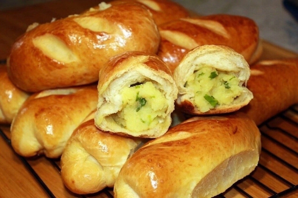 Приготовила "волшебные" пирожки по новому рецепту, надо было делать двойную порцию: получились нежные, мягкие и необычные! Рецепт замечательный, мне он очень понравился: с тестом удобно работать, мягкое, нежное и, по итогу вкусное. Ингредиенты: Приготовление: В миску наливаю теплую воду, кефир комнатной температуры, растительное масло (в оригинальном рецепте необходимо 125 мл., когда я готовила тесто первый раз, то добавляла именно 125 мл., но затем уменьшила его норму до 100 мл. и разницы не увидела). Туда же добавляю один белок, соль, сахар и дрожжи. Хорошо все перемешиваю и, постепенно просеивая муку, замешиваю тесто. Оно получается мягкое и слегка липнет к рукам. Тесто накрываю полотенцем и отправляю в теплое место для подъема примерно на час. Пока тесто подходит, готовлю начинку. Начинку для этих пирожков можно использовать любую на свой вкус: как соленую, так и сладкую. У меня в данном случае картофельное пюре с зеленью. Подошедшее тесто обминаю и делю на неск