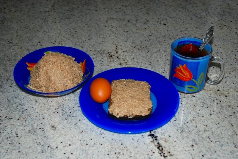 Я обычно такой паштет готовлю к праздникам на закуску. После охоты, в течение всего сезона собираю отдельно печень и сердечки от разной дичи, уток, фазанов, куропаток, перепелов, голубей, зайцев, все вместе замораживаю, а перед праздником делаю очень вкусный, ароматный, нежный паштет. Но так как уже несколько лет на охоту не ходил, придется паштет сделать из обычной куриной печени с сердечками. Тоже вкусно)). Паштет готовится очень быстро и легко. В кастрюлю положить печень с сердечками, перец горошком, одну целую очищенную луковицу, одну морковь крупно порезать, лавровый лист, залить водой чтобы только все покрывало и варить после закипания минут 15-20. После слить воду, выбросить лук и морковь, оставить остывать. За это время пожарить на растительном масле лук и потертую на крупной терке морковь до золотистого цвета. Отдельно пожарить грибы, любые, но грибы в этом паштете совершенно не обязательны, в классическом варианте паштет без грибов. Зате