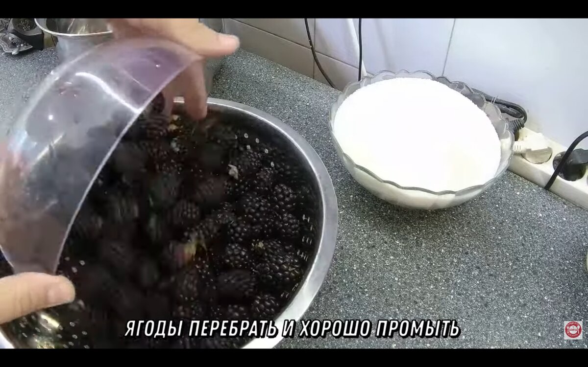 Привет друзья сегодня поделюсь как я готовлю варенье из ежевики без варки! Для приготовления нам понадобится 📖 Ингредиенты: Ежевика - 1 кг. Сахар - 1 кг. Киллограм ягод ежевики хорошо промыть и перебрать. Нам нужны только целые спелые ягоды. Промытые ягоды перекладываем в подходящую чистую ёмкость. Я буду использовать кастрюлю. Затем заливаем ягоды кипятком и даём постоять 1-2 минуты. После чего сливаем воду и даём ягоде хорошо стеч. Ошпаренную кипятком ягоду перекладываем обратно в кастрюлю и постепенно добавляя сахар пробиваем её погружным блендером. 🔴Немного о пользе ежевики Ежевика считается родственницей малины, единственное различие между ними заключается в строении ягод. Всего в мире насчитывается около 200 видов ежевики. В основном ягоды ежевики используют в оздоровительных целях за счет ее целебных свойств, которые объясняются ее химическим составом. В него входят различные витамины такие, как РР, В1, В2, К, С, бета-каротин, Е и различные минеральные вещества. Также в