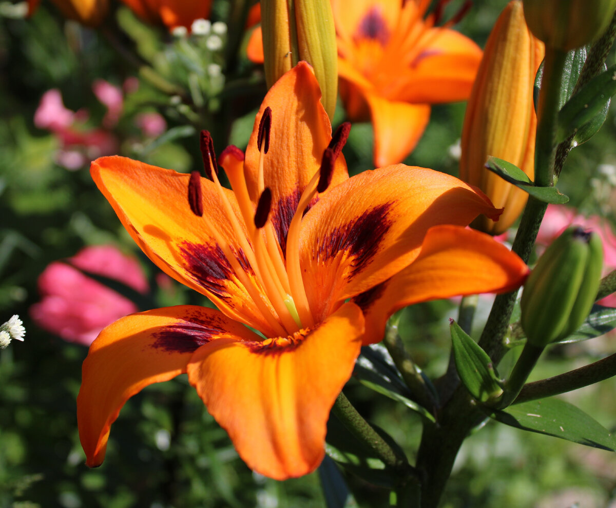 Азиатская лилия «Лорето» (Loreto) - сразу обращает на себя внимание. Весной ростки крупные, толстенькие и быстро идут в рост. Ярко-оранжевые цветы с эффектными темно-бордовыми штрихами, проходящими по центру каждого лепестка притягивают взгляд издалека. Высота сорта примерно до 110 см. Диаметр одного цветка около 15-16 см. Аромат отсутствует. Зацветает «Лорето» в конце июня. На 1 стволе максимальное количество цветков у нас было 7. Луковицы крупные и ежегодно дают хороший прирост деток-луковиц. Азиатская лилия «Лорето» - добавляет ярких, радостных красок участку. Сорт смотрится красиво и в одиночной посадке, и в соседстве с другими цветами. Подходит для срезки. Спасибо за внимание!