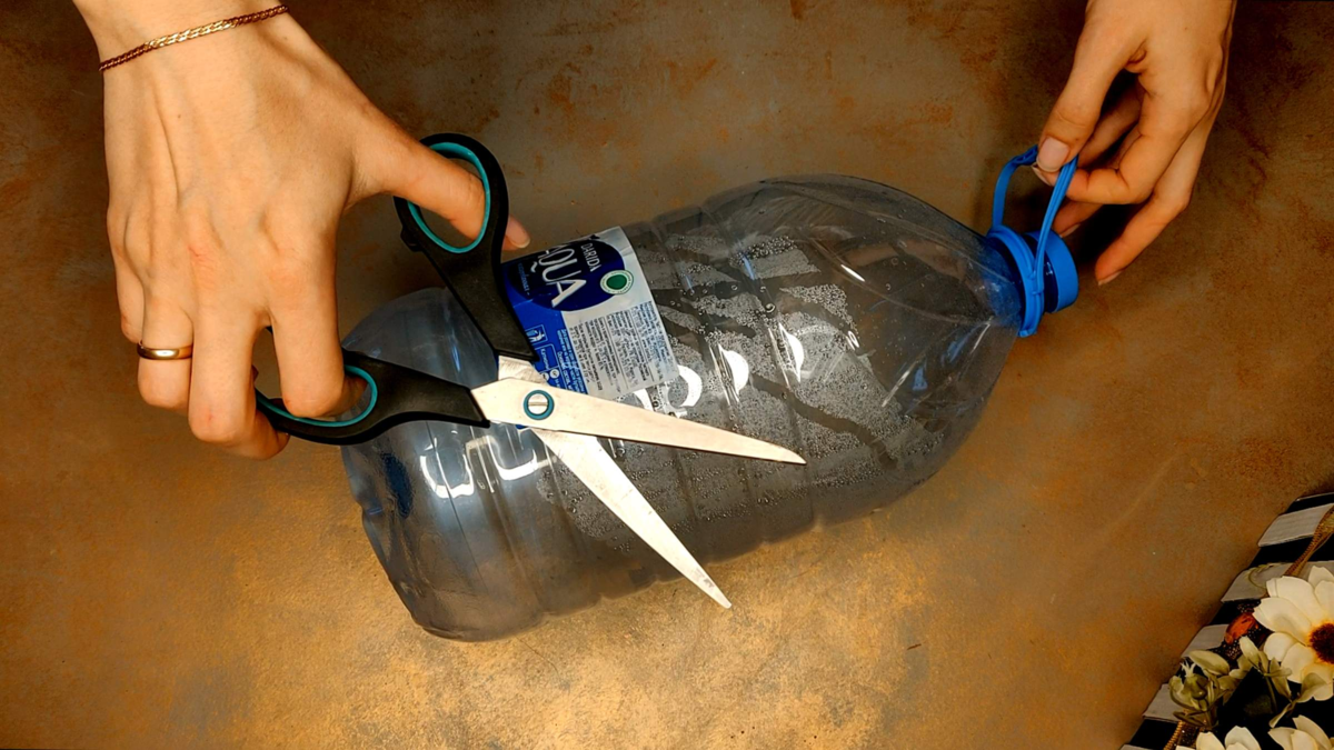 Приветствую всех кто заглянул на мой рукодельный канал. Хочу поделиться с вами интересной идеей использовать большую пластиковую бутылку с пользой для дома или дачи. Данная поделка поможет вам организовать хранение в ванне. Итак, нам нужна большая пластиковая бутылка. Отрезаем дно в бутылке и разрезаем его пополам как на фото ниже. Должно получится две детали. Теперь нужно проделать не большие отверстия в деталях по две с каждой стороны. Продеваем шпагат или шнур в отверстия и обклеиваем любым материалом, у меня это скатерть. Должны получится такие две заготовки как на фото ниже: Теперь нужна основа, я взяла прочный пластиковый материал в котором проделала отверстия для фиксации заготовок. Следующим этапом обклеиваем основу тем же материалом, что и заготовки из пластиковой бутылки. Фиксируем шнур на основе с помощью горячего клея. Присоединяем и крепко завязываем с обратной стороны шпагат, фиксируя дополнительно клеем для прочности. Всем спасибо и до встречи в новых рукодельных статьях