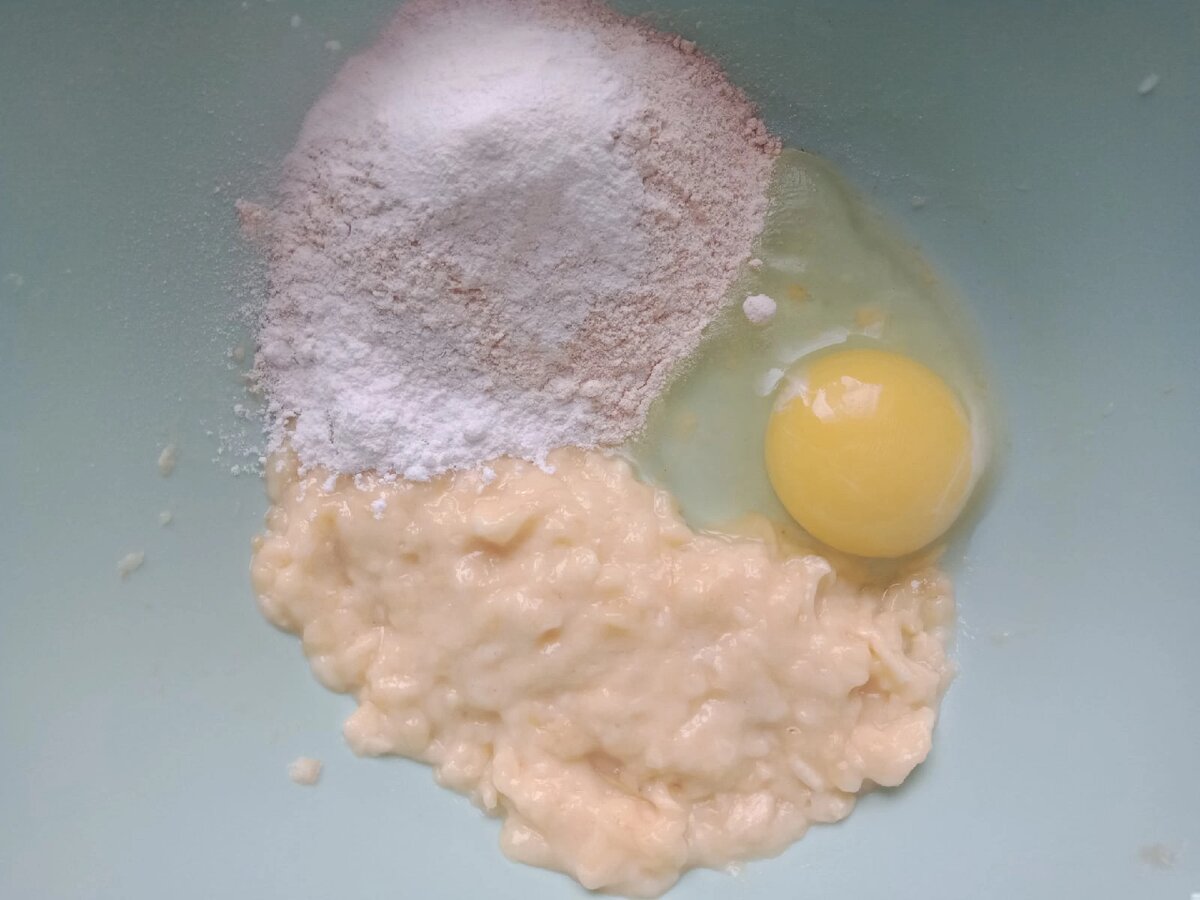 Банан размять вилкой. Добавить яйцо, муку, разрыхлитель, сахзам. Выпекать в формочках при 180гр 15-30мин в зависимости от размера ваших кексов.