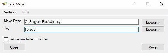 Как переместить любую программу FreeMove - бесплатная программа с открытым исходным кодом для перемещения программных папок в другое место или даже на другой диск без нарушения функциональности. Вам нужно выбрать папку, которую вы хотите переместить, а также место её нового размещения, после чего нажать кнопку Move. Обратите внимание на опцию Set original folder to hidden. Она позволяет скрыть исходную папку в Проводнике, чтобы она не путала и не смущала вас. Дело в том, что утилита переносит все папки и файлы в новое место, а по старому адресу создаются символьные ссылки* на них. Так что не удаляйте перемещённые папки, а просто скройте их. * Символьная (символическая) ссылка — специальный файл в файловой системе, для которого не формируются никакие данные, кроме одной текстовой строки с указателем. Ссылка может указывать на файл, каталог или даже несуществующий файл. Основное назначение символьных ссылок – создание удобной структуры файлов и каталогов в файловой системе. Ссылки позв