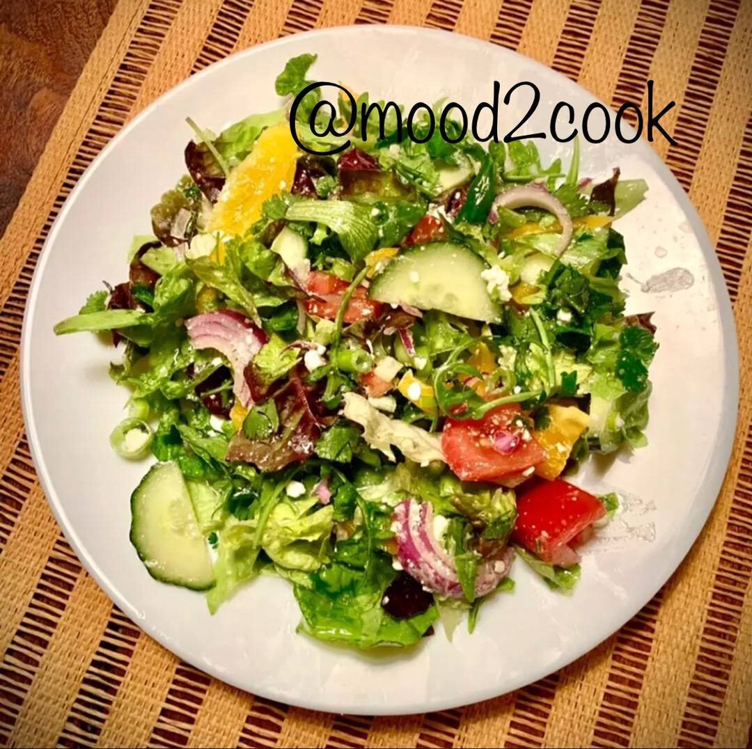 Очень яркий и полезный салат! Минимум калорий и максимум удовольствия. За эту прекрасную идею благодарю Ирину Сенину @irina_senina ! 👌👍 #готовимвместе #перец Ингредиенты: Листья салата (выбирайте хрустящий, типа ромен, латук или фриссе) 150-200 гр, Сладкий болгарский перец, Помидор, Огурец (средний), Красный лук, Редис (опционно), Чёрные оливки без косточек (опционно), Укроп или петрушка (свежие) , Оливковое масло , Зернистый творог Способ приготовления: Огурцы очистите и нарежьте ломтиками, помидоры и перец нарежьте небольшими кубиками, лук полукольцами, листья салата нарвите руками, а зелень мелко измельчите. Смешайте зелень и овощи, приправьте по вкусу, добавьте немного оливкового масла и творог. Хорошо перемешайте.