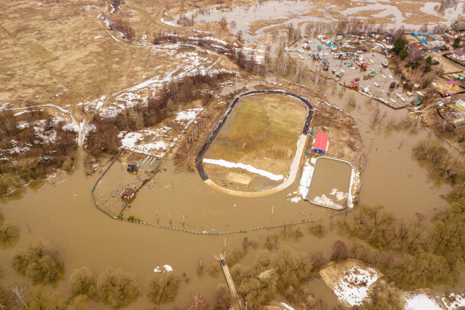 Изначально мы заехали сюда поснимать ход наводнения, настигшего район по скорому весеннему паводку. Было на что посмотреть. Вот так затопило дорогу под ЖД мостом, а вот так — целый поселок с романтическим названием Труд. А вот так — местный стадион. После стадиона, впечатленные, отправились дальше. Песчаная дорога местами подтоплена, местами — ступени из корней невысоких сосен, таких зеленых на фоне еще не раскрашенной теплом жухлой травы. Движемся на "пыжике" неспеша, лишь иногда гулко чиркая толстой штатной защитой картера о корни или бугор колеи. Нормально, проедем… Вскоре дорога кончается, дальше вода, вода, много воды там, где ее быть не должно. "Речка-переплюйка" вмиг набрала ширину Москва-реки. Разворачиваю коптер по сторонам света. И тут на экране пульта замечаю нечто необычное. Концентрические рельефные образования. Словно кто-то приложил к податливой почве гигантскую крупную терку для сыра. С диаметром рабочих зубцов в 7-8 метров. Короче — вы