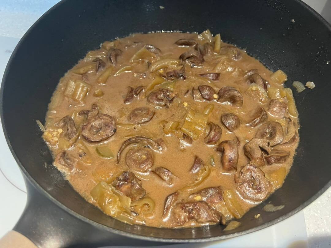 Ингредиенты: сердечек, луковицы, кисло-сладкого соуса, маринованных перцев, сливочного масла, растительного масла Способ приготовления: Сердечки можно вымочить перед приготовлением. Режем сердечки кольцами, лук на четыре части, начинаем обжаривать на сильном огне, на растительном масле. Как только лук начинает золотится, выкладываем сердечки, перемешиваем, обжариваем минут 10. Перец режем небольшими кусками. К сердечкам добавляем сливочное масло, перец, перемешиваем. Добавляем соус, тщательно перемешиваем, накрываем крышкой, убавляем огонь и тушим около часа! Блюдо готово! Можно добавить минут за 10 до конца готовки рубленную зелень. На гарнир рекомендую картофельное пюре! Приятного аппетита!