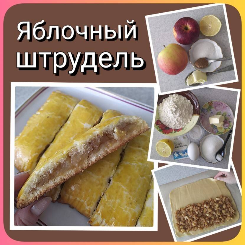 Очень вкусный пирог "Яблочный штрудель" приготовленный в духовке. Пока выпекается, аромат на всю кухню, просто сводит с ума!!!! Штрудель очень вкусный!!!! Начинка приготовленная на сковороде, получается как нектар. Она не вытекает и не выпадает из порционного кусочка пирога, что очень удобно и эстетично. #июль #штрудель #выпечка #яблочныйштрудель #изяблок #cookpad Ингредиенты: Начинка:, яблоки, сок лимона, сахар, сливочное масло, корица молотая, Тесто:, яйцо, соли, ванильный сахар, сахар, сок лимона, сливочное масло (растопить), разрыхлитель, мука, Для смазывания:, яичный желток Способ приготовления: В первую очередь надо приготовить начинку. Яблоки почистить и нарезать небольшими кубиками. На разогретую сковороду выложить кубики яблок, сливочное масло, сахар, корицу и всё перемешать. Из половинки лимона выжать сок и полить на яблоки. Обжаривать на среднем огне до испарения жидкости, постоянно перемешивая. Начинку поставить остывать. Пока начинка остывает, готовим тесто. В миске взбить