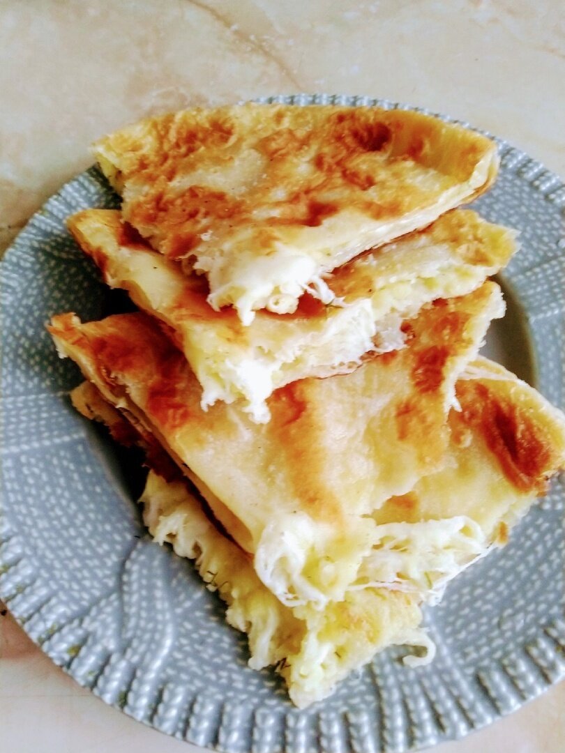 Тесто раскатать в лепешку , посыпать сыром , положить пюре , снова посыпать сыром , поднять края , защипать , примять , раскатать в лепешку