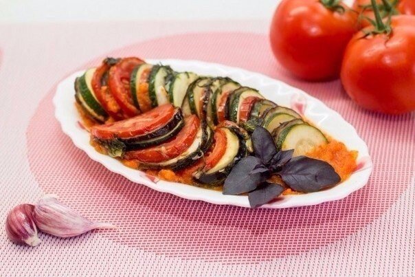 Рататуй — яркое и и очень вкусное овощное блюдо.
