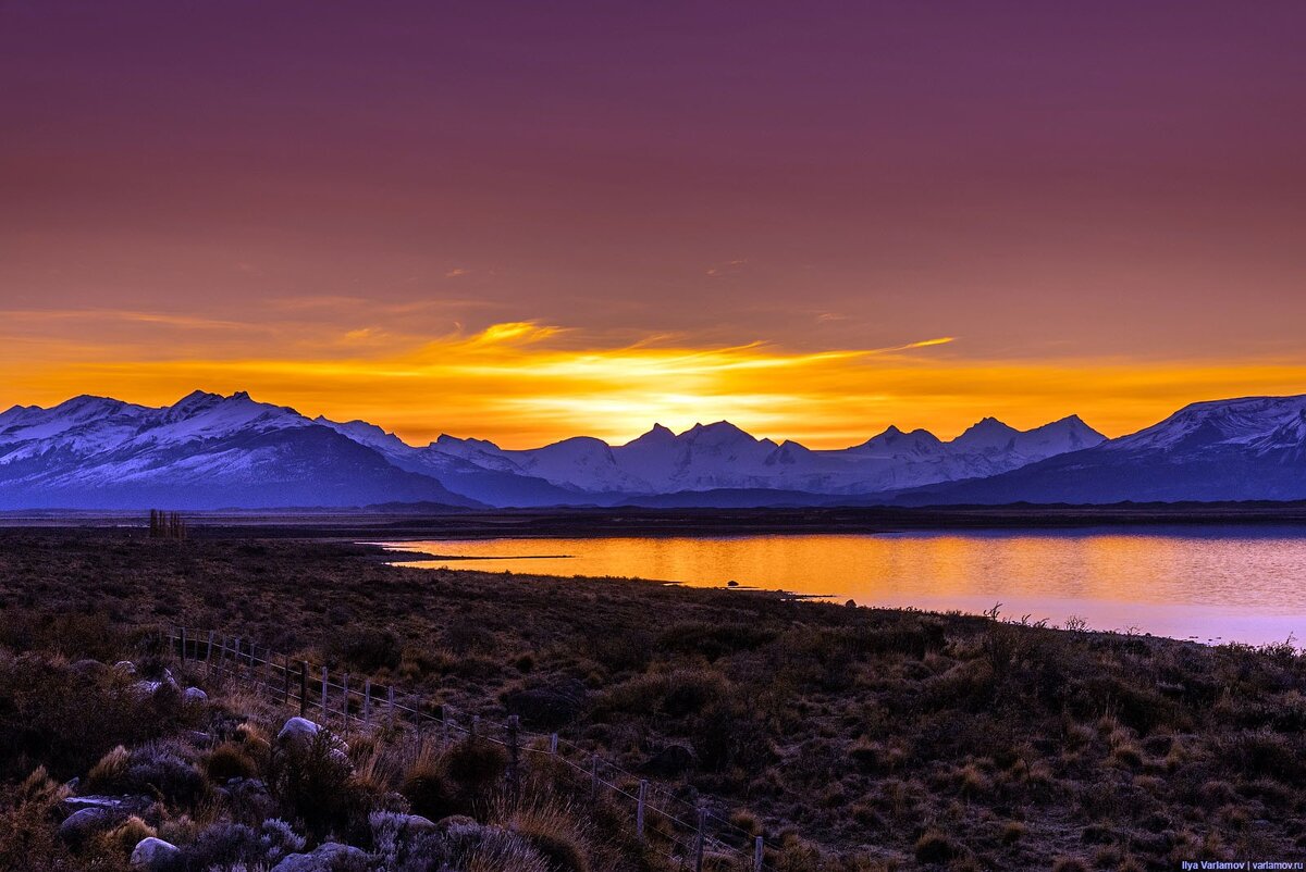 Добрался до Фицроя – одной из самых необычных и красивых горных вершин. Высота у неё небольшая, всего 3405 метров, но склоны почти отвесные. Гора Фицрой относится к Южному Патагонскому ледниковому плато и находится на условной аргентино-чилийской границе. На самом деле граница там до сих пор не демаркирована. В целом Патагонию (это южная часть Южной Америки) Чили и Аргентина как-то между собой поделили. А вот довольно большую часть плато не могут уже десятки лет. Фицрой (или Чальтель) очень любят альпинисты-экстремалы, поскольку она считается чрезвычайно сложной для покорения. По сути это не столько гора, сколько почти отвесная скала, к тому же с гладкой и скользкой поверхностью. Восхождение часто осложняют снегопады и сильный ветер. Вместе с соседними горами Фицрой напоминает сказочные декорации. Именно в таких пейзажах должен жить какой-нибудь злодей. Но никакого злодея тут нет, я проверил! На плато расположены два национальных парка: Лос-Гласьярес ("Ледники") с аргентинской стороны,