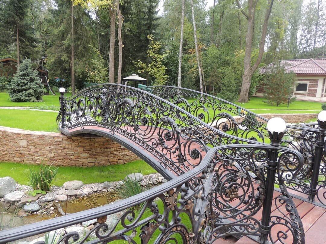 Сегодня на многих загородных участках можно увидеть кованые мостики. Они могут выполнять разные функции - их используют по прямому назначению для создания переправы над естественным препятствием и в качестве элемента ландшафтного дизайна. Даже если мост просто перекинут через сухой ручей, он в любом случае формирует рельеф территории. Далеко не все домовладельцы могут похвастаться наличием на участке выразительных перепадов высот, пригорков и овражков. Мостик поможет добавить ровному ландшафту красивой рельефности, сделать его более сложным. Такая деталь может полностью изменить визуальное восприятие участка и расставить необходимые акценты, благодаря которым он будет выглядеть интереснее и даже больше по размерам. Мостик можно разместить на любой территории, вне зависимости от ее величины. Безусловно, в идеале его лучше перекинуть через небольшой водоем, но если таковой на участке отсутствует, можно сделать «сухой» ручей из гравия или цветов. Также можно соединить мостом две дорожки в