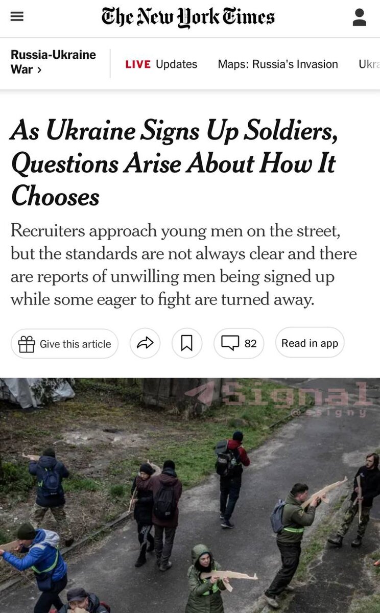 Кампания по мобилизации на Украине "вызывает обвинения в том, что она носит скрытный и произвольный характер", — пишет The New York Times в репортаже из Харькова. "Эта кампания включает в себя хождение по улицам веером в поисках потенциальных солдат и выдачу повесток с приказом явиться в военкоматы. Но усилия, особенно уличная вербовка, вызывают обвинения в том, что они носят скрытный и произвольный характер, что они нарушают собственные правила правительства и что иногда они призывают нежелающих, отвергая желающих. Это также привело к игре в кошки-мышки между вербовщиками и мужчинами, пытающимися их избежать", — сообщает издание. NYT рассказывает о петиции к Зеленскому, подписанной более чем 25 тысячами украинцев, с просьбой запретить выдачу повесток на КПП, заправках и других общественных местах. "29-летний Денис сказал, что недавно ему вручили повестку, которую он не хотел, возле харьковского супермаркета. Но в военкомате «я солгал и сказал, что у меня нет военной подготовки»,