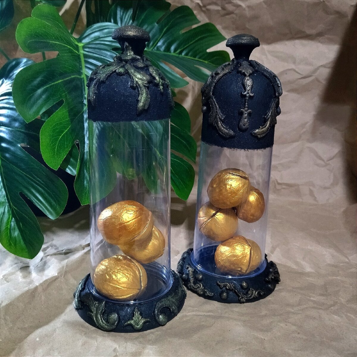 При помощи молдов сделала мелкие детали и декорировала ими колбы.