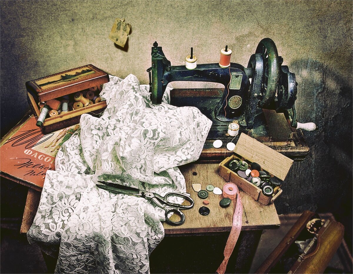 Портной работал весь день. Нужно быть аккуратным, пропуская тонкий шелк под ушком швейной машинки.
