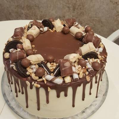 Вкусный, очень сытный, мегашоколадный торт "Сникерс" с арахисом и солёной карамелью. Подходит для праздника! Ингредиенты Для бисквита: Для крема ганаша: Крем: Дополнительно: Бисквит Просеиваем и объединяем все сухие ингредиенты, кроме кофе: муку, какао, соду и разрыхлитель. Хорошенько перемешиваем. В другую ёмкость тщательно растираем сахар и растительное масло. Затем добавляем яйцо и вновь хорошо перемешиваем. Добавляем половину сухой смеси. Перемешиваем венчиком. Вливаем молоко. Перемешиваем. Туда же добавляем только что заваренный кофе (кипяток). Хорошо перемешиваем. Высыпаем оставшуюся часть сухих ингредиентов. Хорошо перемешиваем ещё раз Бисквитное тесто готово. Выпекаем Перекладываем тесто в круглую, желательно разъемную форму для выпекания. Выпекаем шоколадный бисквит в духовке, предварительно разогретой до 180 градусов, около 40 минут. Ориентируйтесь на свою духовку. Минут через 30 уже проверяйте готовность по сухой шпажке (если бисквит готов - воткнутая в середину коржа дерев