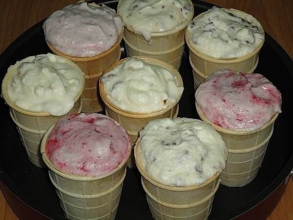 Тем временем молоко закипело и в него мы постепенно, тонкой струйкой вливаем желтковую массу, при этом не забываем постоянно мешать. Доводим до кипения. Когда смесь закипела, снимаем кастрюлю с огня и ставим её в холодную воду, при этом все надо тщательно мешать, пока масса не остынет и не станет теплой. Затем массу оставляем надо её полного охлаждения, периодически мешаем, после чего разливаем по формам, и отправить в холодильник для заморозки.