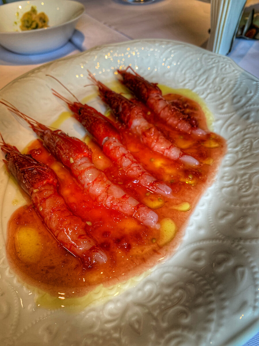 Новый итальянский ресторан Антона Пинского, Артема Лосева и Виталия Истомина (совместные проекты - Ava и Patriki) в двухэтажном особняке на Тверском бульваре, где раньше работали «Иностранцы», а еще раньше - Кафе «Бублик». Теперь здесь модное место с итальянской едой, вином и дизайнерским интерьером от Ирины Глик (обратите внимание на стол для двоих на крохотном балконе, куда пускают в порядке живой очереди). Меню обширное и закручено вокруг классики Апеннинского полуострова с авторским взглядом на нее двух шефов. А вот таким может быть обед или ужин на большую компанию: Сицилийские креветки - 1350 руб Карпаччо из гребешка с трюфелем - 790 руб Ассорти тартаров (лосось, тунец, сибас) - 890 руб Дорадо с зеленым перцем - 650 руб Вителло тоннато - 780 руб Зеленый салат Loona - 690 руб Паштет из тунца с боттаргой - 950 руб Паштет из цесарки с соусом из абрикоса - 690 руб Брускетта с анчоусами и боттаргой - 650 руб Карпаччо из печеных перцев и артишоков с соусом тоннато - 780 руб Тартар из м