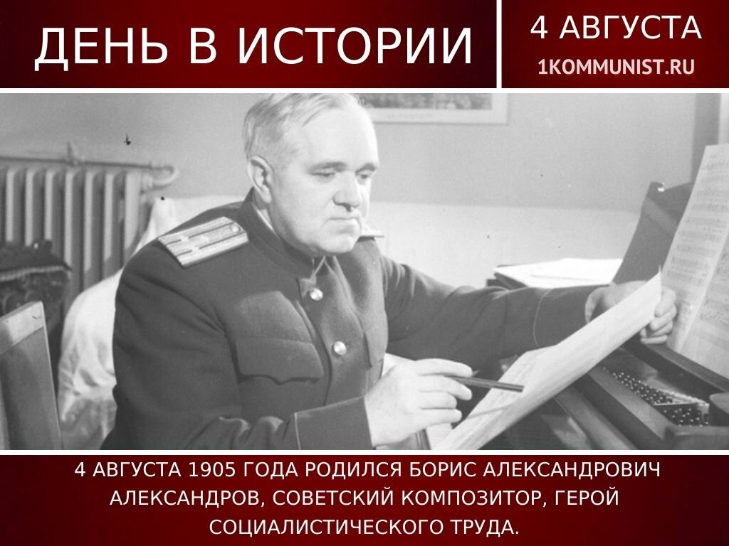 4 августа 1905 года родился Борис Александрович Александров, советский композитор, Герой Социалистического Труда.