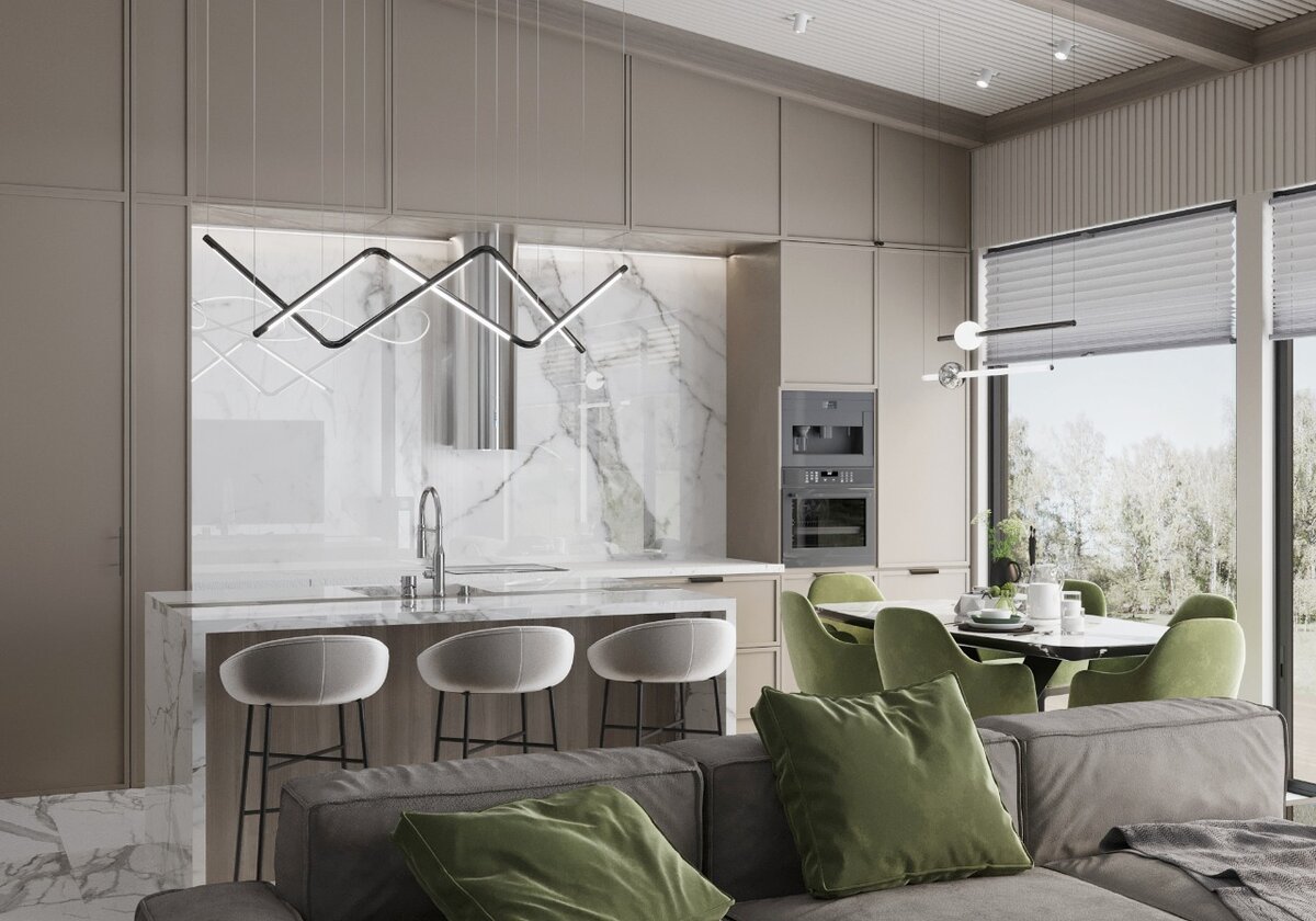 Фартук обычно подстраивается под стиль кухни. Поэтому для начала нужно проработать концепцию интерьера, понять, как будут выглядеть полы, стены, мебель и фасады гарнитура. Выбираем материал для фартука Керамическая плитка – один из самых популярных и практичных вариантов. Мозаика – большой выбор форм, материалов и размеров позволяет делать фартук в различных стилях и цветовых решениях. Ламинированная стеновая панель – бюджетный вариант для тех, кто хочет быстрых перемен на кухне без грязного ремонта. Закаленное стекло – дает возможность выполнить фартук в любом цвете и нанести любой рисунок. Можно сделать прозрачной или зеркальной. Дерево – позволяет интегрировать кухню в окружающий интерьер или визуально продлить гарнитур без верхних шкафов. Искусственный камень – позволяет установить фартук в стык со столешницей, без плинтуса. Как сочетать фартук с другими элементами интерьера Неочевидное, но довольно интересное решение, когда фартук является продолжением напольного покрытия. Для эт