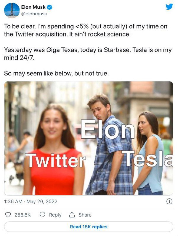 Персональный бренд самого богатого человека в мире Илон Маск не только самый богатый на планете, но и, пожалуй, самый активный пользователь Twitter. В его сутках точно 24 часа?🤔 Твиты Илона обладают особой силой, которая заставляет показатели фондового рынка пускаться в пляс. Несколько фактов: 1. Перед покупкой Twitter Маск продал акции Tesla на 8,5 млрд долларов. Что сделали акции автопроизводителя? Правильно, упали в цене на треть. Что сделал Маск в ответ на это? Вместо buyback (обратный выкуп акций) запостил твит и уверил всех, что покупка социальной сети занимает не больше 5% его времени. Она просто широко обсуждается в СМИ! Наблюдаем, отрастет ли Tesla. 2. В 2021 все в том же Твиттере миллиардер добавил хештег #bitcoin в описание профиля и написал: «Оглядываясь назад [мы понимаем, что] это было неизбежно». Курс биткоина моментально взлетел на 20% и, несмотря на отсутствие прямых связей с Маском, стал очень чувствителен к его заявлениям. 3. Забавной получилась история с Clubhouse
