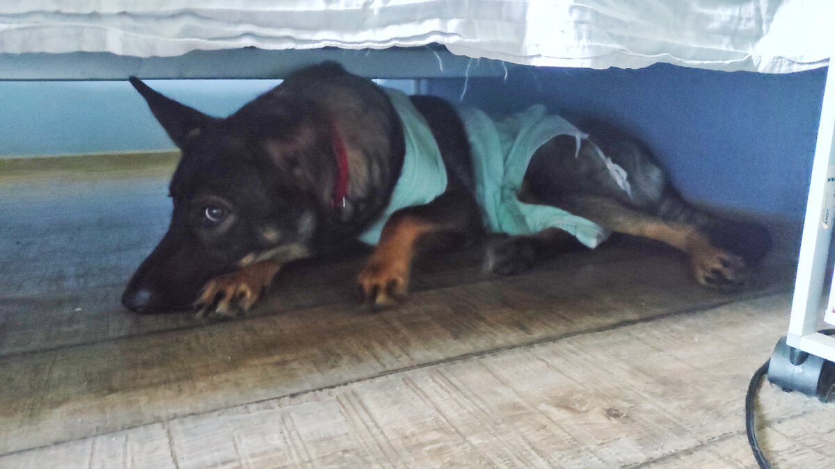 Глаза ясны и чисты, шаг всё легче, попона и ограничения бесят Арью всё больше. Собака перестала стремиться на хозяйскую кровать, где мягко и успокаивающе пахнет кожаными, и заняла свой привычный пост. Противовоспалительное и обезболивающее уже не даём. Но антибиотик и мазь - ещё продолжаются. Примечательно, что собака совершенно наплевательски переносит уколы в холку, однако всячески пытается уклоняться от обработки шва. Возвращающаяся подвижность и помеха в виде попоны в сочетании дают не очень приятный результат - Арья раздражительна. Вчера облаяла дверь, за которой сидит Жуля. Неприятие рыжей шилопопки у овчарки не прошло. Я, не меняя интонации, сказала мужу, чтобы не реагировал, не одергивал. Аря несколько раз посмотрела в нашу сторону, не увидела у нас интереса и поддержки к её действиям, замолчала и ушла. Надо продолжать её нахваливать, когда нюхает под дверью молча, не проявляя агрессии. По совету консультанта начали выполнять простые команды рядом с дверью. Попона из ветлече