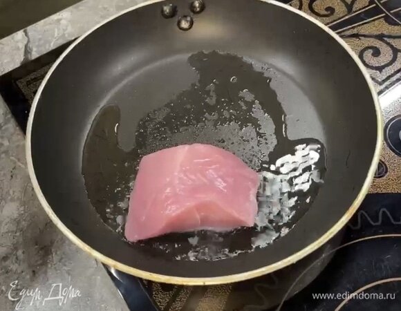 базилик свежий - 1пучок Шаг: 1 На разогретую сковороду добавьте растительное масло и соль, выложите индейку и обжарьте по 4 минуты с каждой стороны. Шаг: 2 После того как индейка подрумянится, выложите ее на фольгу, смажьте сливочным маслом,