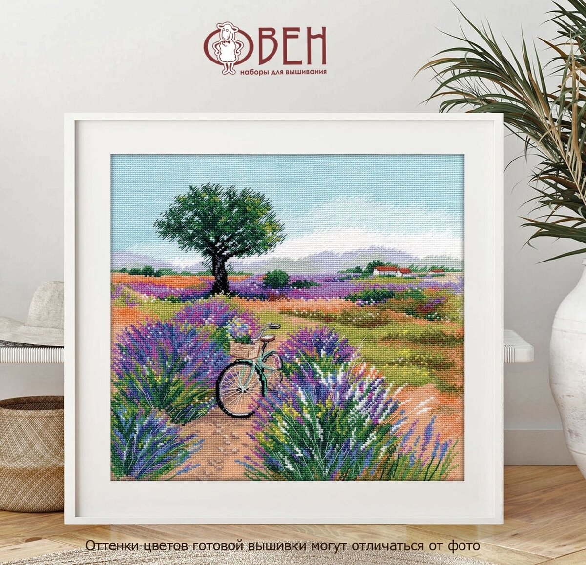 Всем большой вышивальный привет! Лучше всего, по моему мнению, фирме Овен удаются наборы для вышивания с пейзажами. Очень много красивых и разных пейзажей у этого производителя выпущено. И немало их у меня куплено- 7 штук из квадратной серии 20х20 см., осень, зима, лето, круги... И вот очередной пейзаж скоро появится в продаже. Набор арт. №1500 "Прогулка в Прованс". Размер вышитой работы- 25х25 см. Дизайнер Екатерина Андреева. Вышивается в 2 нити, 26 цветов мулине ПНК. Канва Аида 16-го каунта белого цвета. Пейзаж симпатичный.В кои- то веки видно, что это стебельки с цветочками, а не сплошная сиренево- фиолетовая масса. У меня, правда, не вызывает желания сразу купить его и вышить - честно говоря, пейзажи с лавандой у разных производителей лично мне уже примелькались. И у меня уже вышит набор от Овен 1156 "Прованс". И от МП Студия маленький набор "Очарование Прованса". Поэтому уже хватит в моей жизни этой тематики, хотя производители трудятся не покладая рук в этом направлении