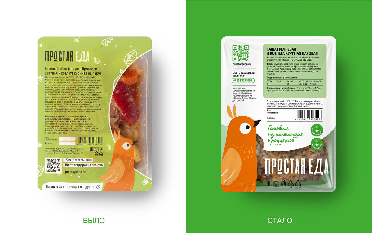 О проекте «Простая Еда» – это удобно расположенные кулинарии, где можно купить вкусную, всегда свежую, домашнюю, натуральную готовую еду, выпечку, полуфабрикаты и кондитерские изделия. Мы работаем для людей, которые понимают ценность собственного времени и хотят сэкономить его для вещей более важных, чем готовка, но при этом не в ущерб качеству еды и собственному здоровью. Задача Разработать заметный, привлекательный и запоминающийся дизайн упаковки готовых блюд, который донесёт позиционирование и преимущества бренда «Простая Еда». По результатам аудита дизайна упаковки «3 слоя эффективности» была выявлена ключевая проблема: упаковка, являясь важной точкой контакта бренда с потребителем и его окружением, работает недостаточно эффективно. Не раскрывается концепция бренда, его суть и преимущества. Дизайну не хватает уникальности, он не стимулирует демонстративное потребление и сарафанный маркетинг. Есть бренд-персонаж в виде придуманной дружелюбной птички Таи, но композиционно он довольн