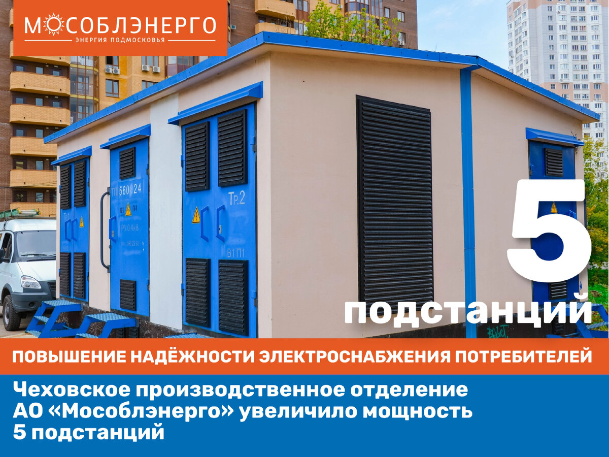 Повышение надежности: Чеховское производственное отделение АО «Мособлэнерго» увеличило мощность 5 подстанций
